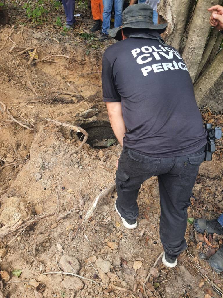 As ossadas humanas foram localizadas dentro de uma manilha de concreto de esgoto, que estava vedada. As equipes do ICPDA (Instituto de Criminalística Perito Dimas Almeida) e do IML (Instituto de Medicina Legal) foram acionados para realizar a perícia no local e a remoção dos restos mortais, que serão levados ao IML para identificação.